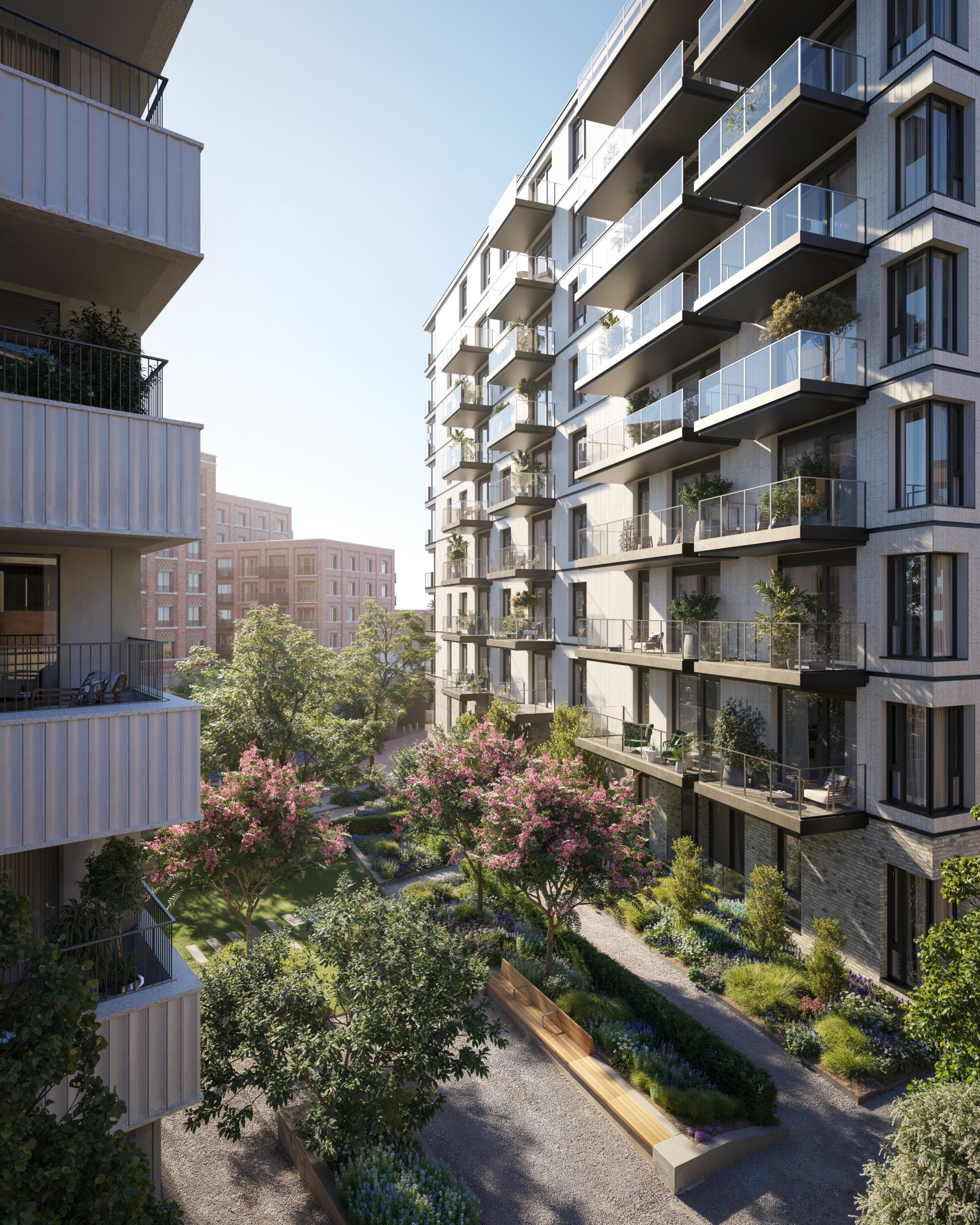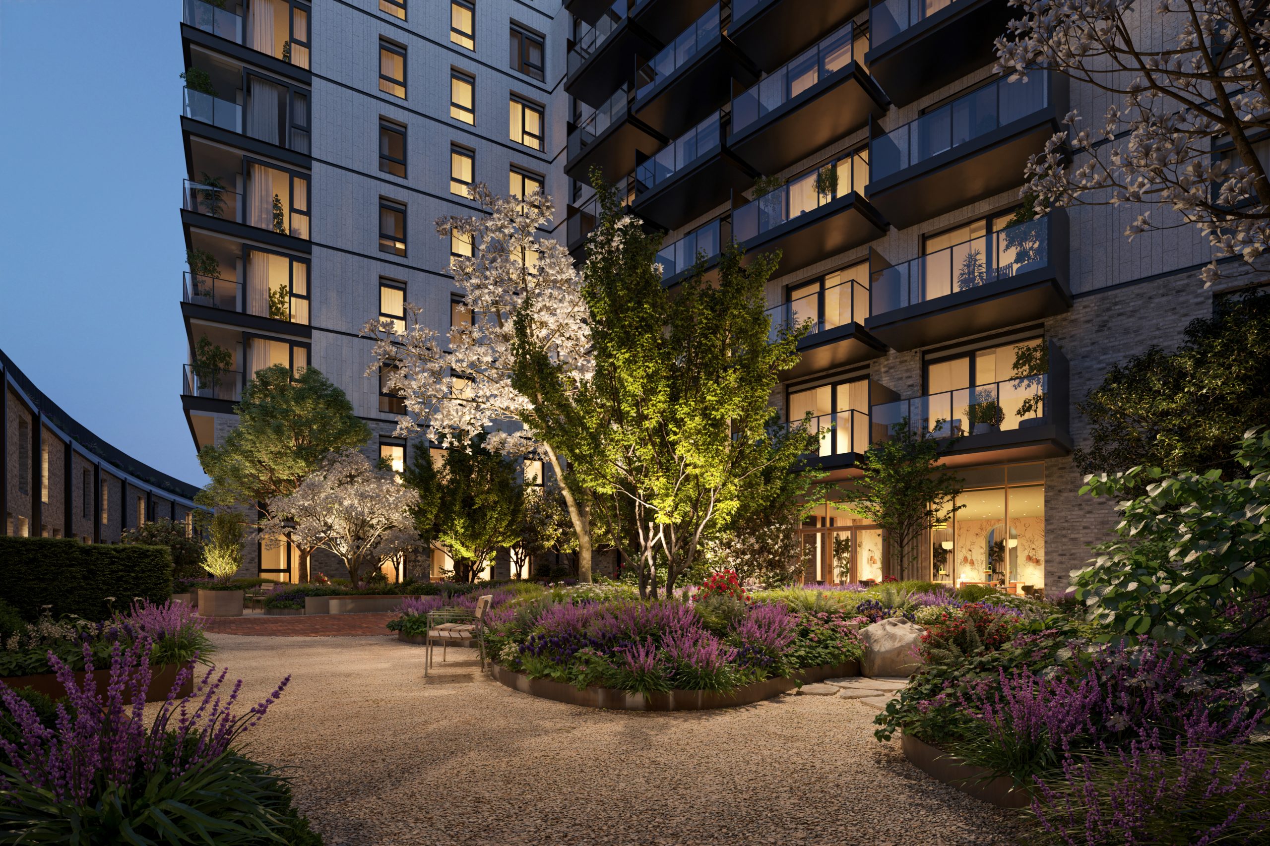 Settle into seamless indoor-outdoor living at Scenery House – a modern take on the London mansion block. Tucked between Hammersmith Park, a new Pocket Park and peaceful courtyard gardens, it offers space, stillness and a sense of serene seclusion, all in harmony with nature.